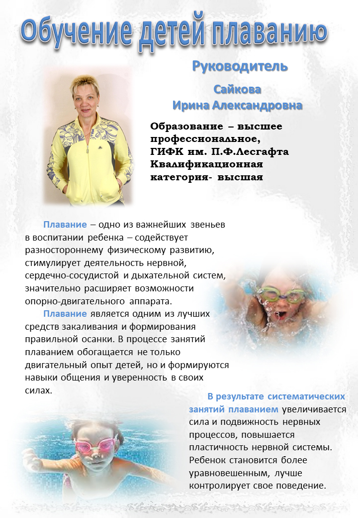 Дополнительная общеобразовательная общеразвивающая программа "Обучение детей плаванию" 4-6 лет.
